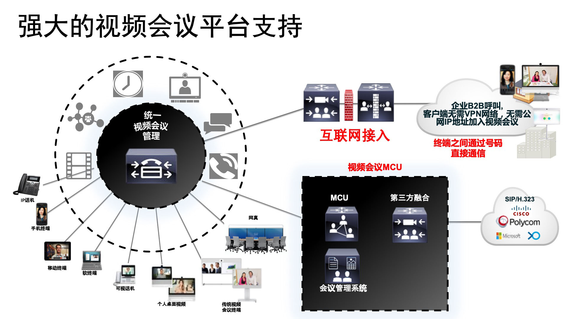 后台强大的至诚视频云平台ZC Meeting将视频会议、音频会议和第三方视频会议互通解决方案整合到一个平台中,可满足现代企业视频会议协作需求。