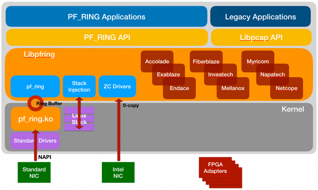 PF_RING™具有模块化架构,可以使用除标准PF_RING™内核模块以外的其他组件。当前,其他模块集包括: